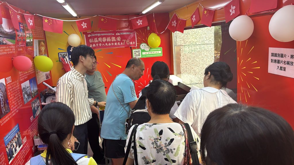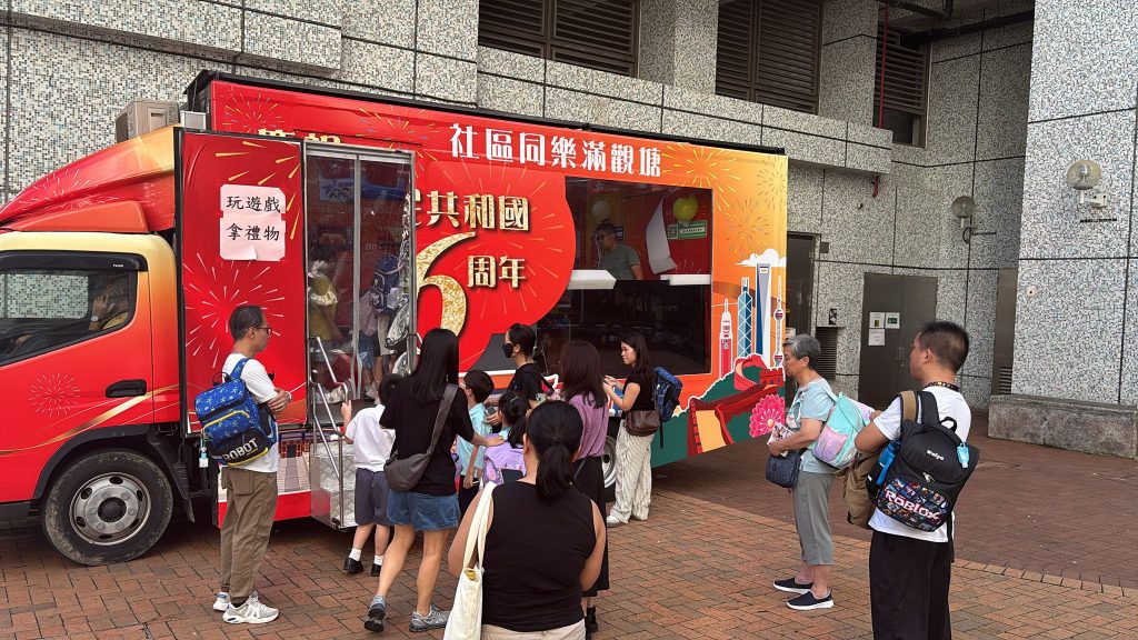 活动期间,宣传车先后驶入秀茂坪邨、牛头角下邨、安达邨、翠屏邨等多个大型屋邨。车辆停稳后,工作人员迅速展开互动区域,车内设置的多个互动游戏摊位前,很快便排起了长队,欢声笑语此起彼伏。此次活动由九龙社团联会观塘地区委员会主办,观塘民政事务处赞助,旨在通过社区同乐的形式,凝聚民心、共贺国庆,进一步增强居民的国家认同感与民族自豪感。