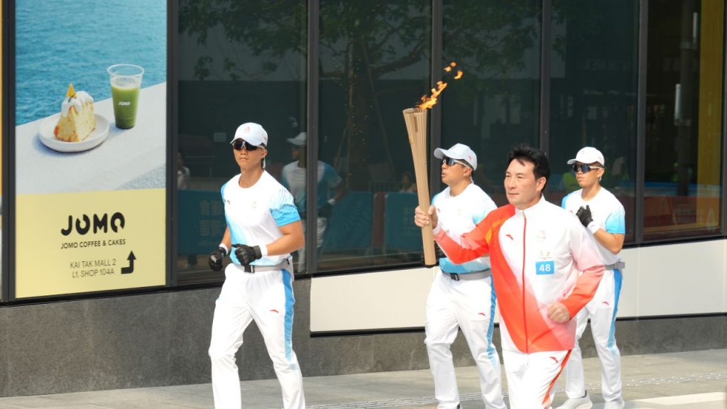 当火炬传递队伍临近,现场瞬间响起欢呼。众人屏息注视著火炬手顺利接火,火焰燃起的那一刻,义工们的呐喊声达到高潮,手中的旗帜随之舞动,与火炬光芒相映成趣,成为路边最动人的风景。