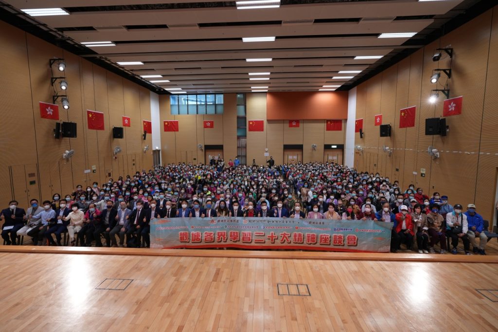 觀塘民政事務處專員林兆康、九龍社團聯會觀塘地區委員會主任黃春平、觀塘區議會主席柯創盛、立法會議員鄧家彪、顏汶羽相繼致辭並分享了學習二十大精神心得。