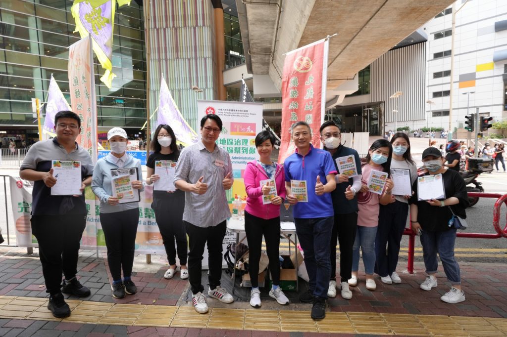 由5月5日起,九龍社團聯會觀塘地區委員會在觀塘各區包括觀塘地鐵站、麗景、坪石、油塘、藍田、牛頭角、翠屏、秀茂坪等地方共開設60多個街站,呼籲市民簽名支持區議會改革。房屋局何永賢局長、民政事務處林兆康專員、九龍社團聯會觀塘地區委員會黃春平主任、多名立法會議員、地區服務團體領袖到場支持,撐香港各界撐完善地區治理大聯盟和同義工們打氣,全力支持政府的建議方案。