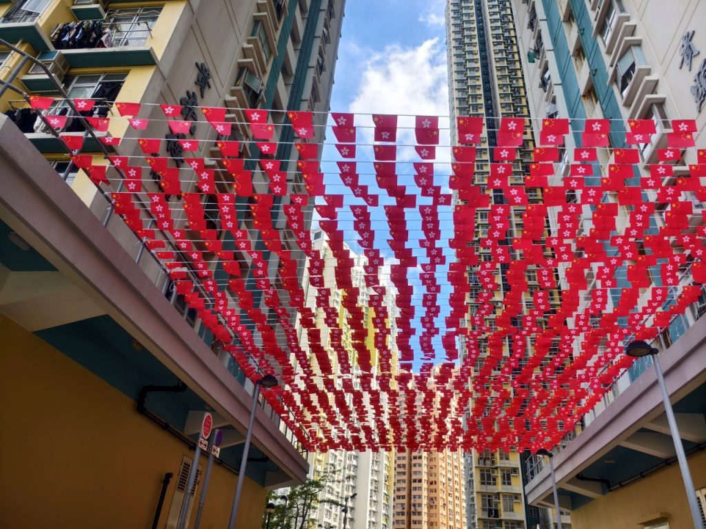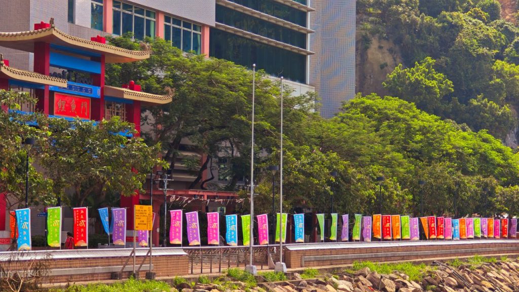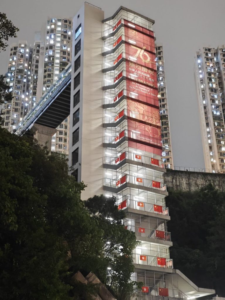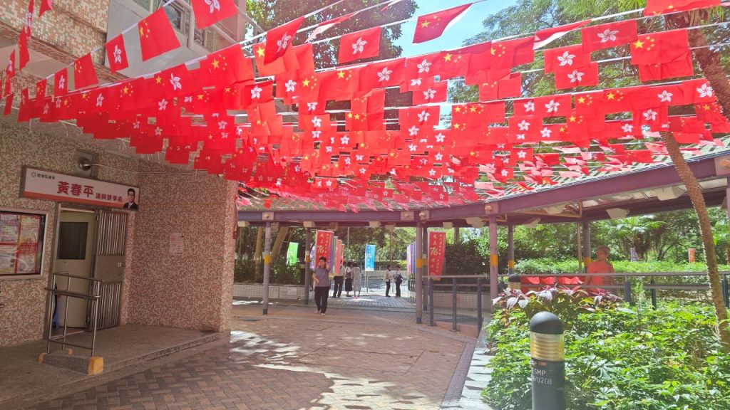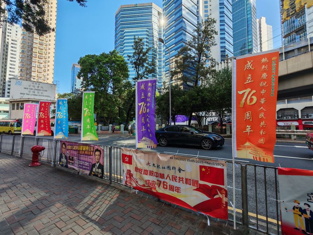 【本會資訊】國旗飄揚映觀塘 慶祝中華人民共和國成立76周年 為慶祝中華人民共和國成立 76 周年,九龍社團聯會觀塘地區委員會及屬下屬會在觀塘街邊懸掛起國旗、區旗及彩旗,為國慶佳節增添了濃厚的喜慶氛圍。 觀塘區的街道上彩旗飄飄,鮮艷的五星紅旗在陽光下格外奪目。這些國旗、區旗和彩旗沿著街道整齊排列,形成了一道亮麗的風景線,吸引了眾多市民的目光。通過懸掛國旗、區旗和彩旗的方式,讓更多的市民感受到國慶的歡樂氣氛,增強市民的愛國情懷和民族自豪感。