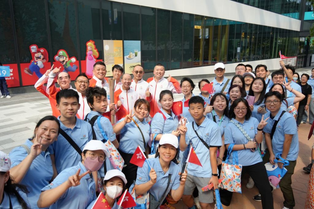 當火炬傳遞隊伍臨近,現場瞬間響起歡呼。眾人屏息注視著火炬手順利接火,火焰燃起的那一刻,義工們的吶喊聲達到高潮,手中的旗幟隨之舞動,與火炬光芒相映成趣,成為路邊最動人的風景。