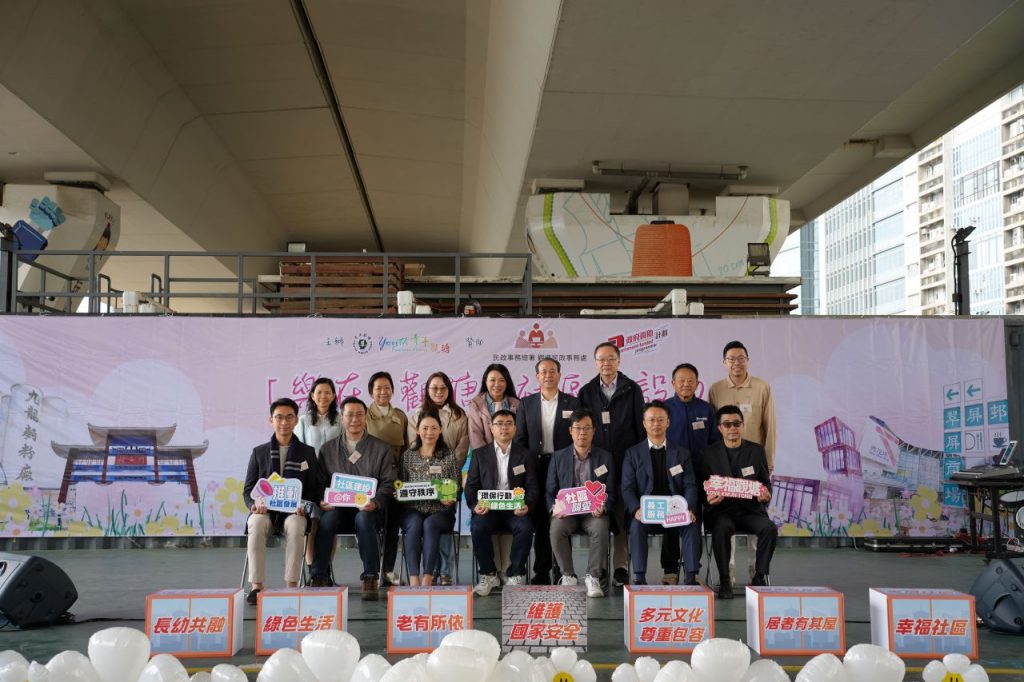 本次活動很榮幸邀請到中聯辦九龍工作部段健華處長、立法會議員洪錦鉉、張培剛,警務處東九龍總區指揮官謝翠恩,觀塘民政助理專員張家朗,九龍社團聯會觀塘地區委員會主任黃春平議員,青年觀塘主席房逸君議員,以及多位地區領袖與嘉賓出席主禮環節,共同為本次社區建設日揭開序幕。